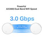 Experimenta velocidades ultrarrápidas de hasta AX3000 (2402 Mbps en 5 GHz y 574 Mbps en 2.4 GHz) gracias al estándar Wi-Fi 6. Disfruta de una conexión fluida y sin interrupciones para todos tus dispositivos, eliminando puntos muertos y garantizando un rendimiento óptimo en tu hogar.