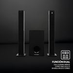 Experimenta un sonido envolvente con 85 W RMS de potencia real. Su diseño dual te permite usarla como una elegante barra de sonido o dividirla en dos torres para una experiencia sonora más inmersiva y distribuida.