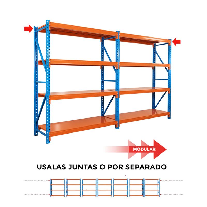 Estantería Metálica CASSÉ 200x200x60 hasta 200Kg por Nivel Azul y Naranja Combo x3
