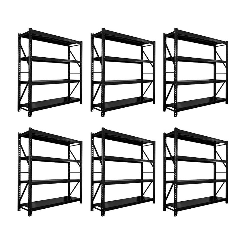 Estantería Metálica CASSÉ 200x200x60 hasta 200Kg por Nivel Negro Combo x6