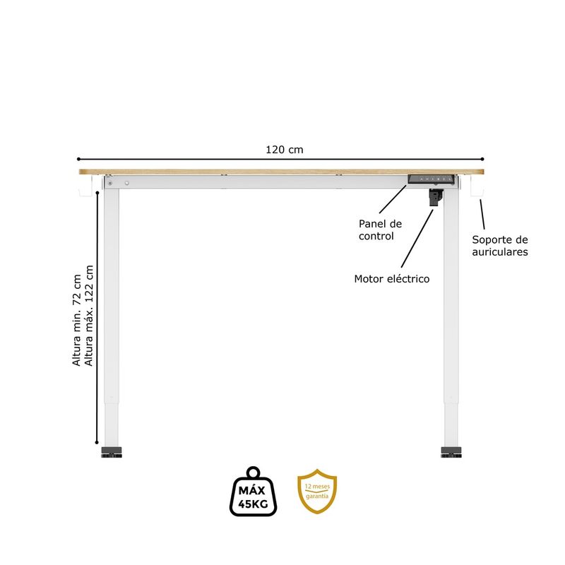Alternar entre estar sentado y de pie reduce el sedentarismo y puede mejorar tu postura y niveles de energía. Con una capacidad de carga de 45 kg, este escritorio soporta tu setup completo, ayudándote a crear un entorno de trabajo más saludable y dinámico.