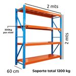 Con 4 niveles y una capacidad de carga de 300 kg, esta estantería ofrece un amplio espacio para almacenar una gran variedad de objetos, desde herramientas y materiales hasta productos y archivos. Sus dimensiones de 2 metros de alto x 2 metros de largo x 60 cm de profundidad proporcionan un espacio de almacenamiento considerable para cualquier entorno, ya sea un almacén, un garaje o una oficina.