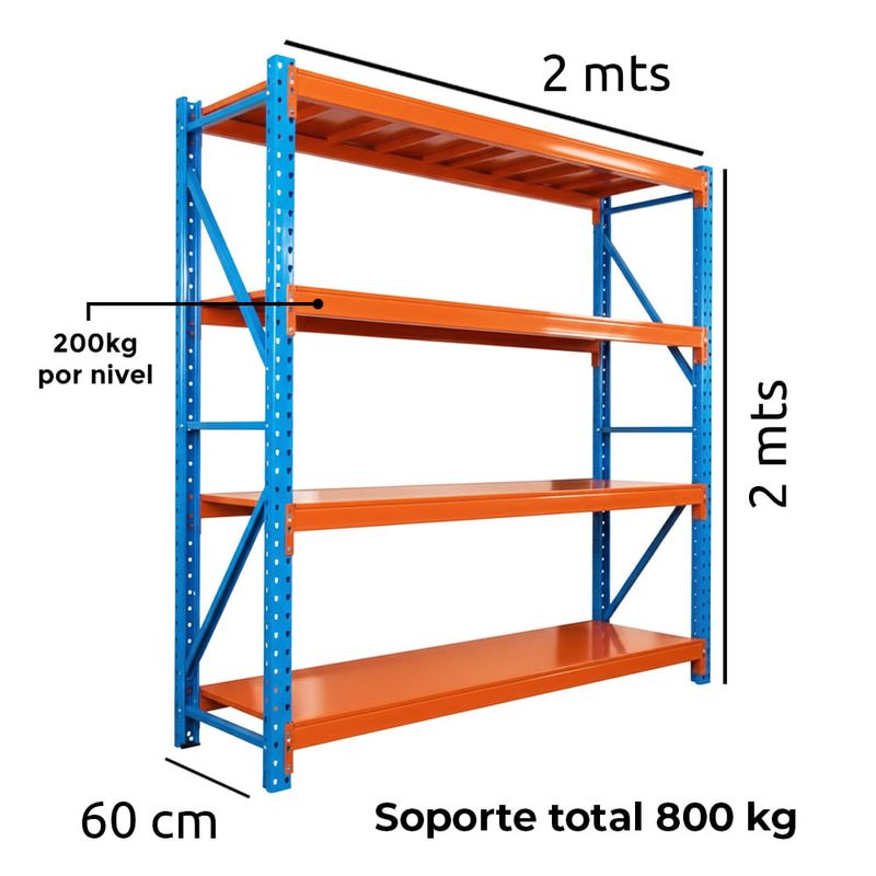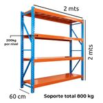 Con 4 niveles y una capacidad de carga de 200 kg por capa, esta estantería ofrece un amplio espacio para almacenar una gran variedad de objetos, desde herramientas y materiales hasta productos y archivos. Sus dimensiones de 2 metros de alto x 2 metros de largo x 60 cm de profundidad proporcionan un espacio de almacenamiento considerable para cualquier entorno, ya sea un almacén, un garaje o una oficina.