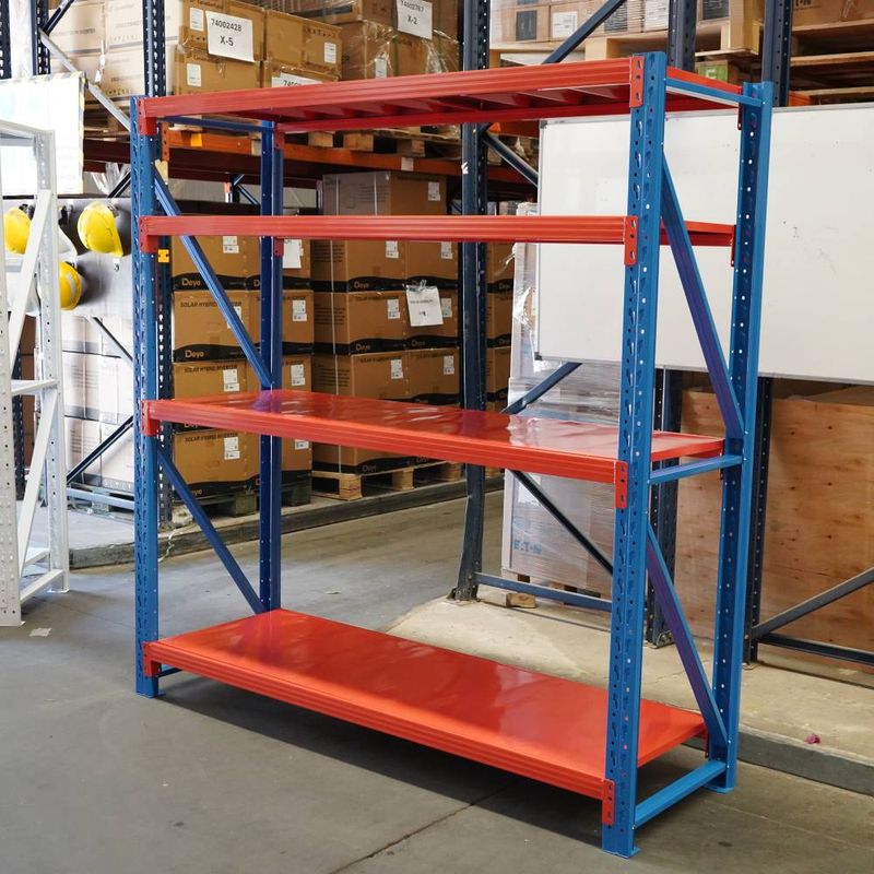 Fabricada en acero laminado en frío con un tratamiento de calado y fosfatado, esta estantería garantiza una gran resistencia y durabilidad. El espesor de la placa de acero de 0.3 mm y las dimensiones de las vigas (60mm x 40mm x 0.6mm) y verticales (80mm x 40mm x 0.8mm) proporcionan una estructura sólida y estable capaz de soportar cargas pesadas.