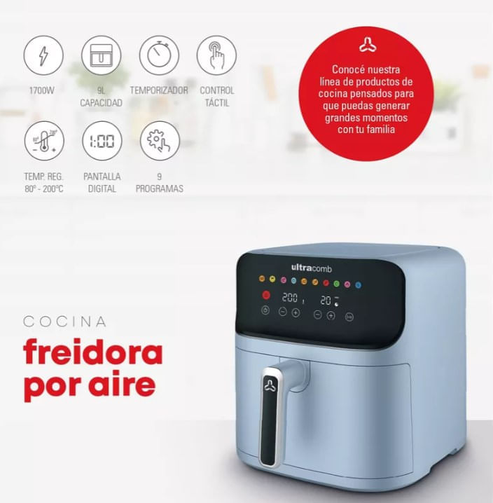 Prepara porciones abundantes y comidas completas gracias a su espacioso recipiente de 9 litros. Su potencia de 1700W asegura una cocción rápida y homogénea, ideal para satisfacer el apetito de toda la familia en una sola tanda.