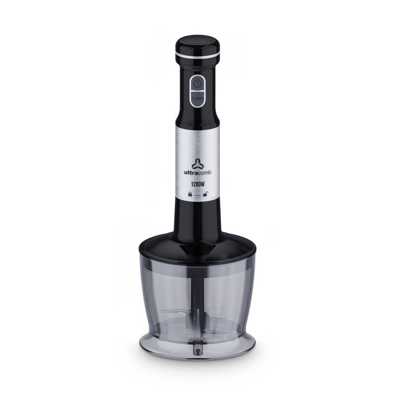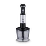 Este set incluye todo lo que necesitas: un batidor doble para postres, un picador con bol de 500ml para ingredientes más duros y un vaso medidor de 800ml. Su pie de acero inoxidable soldado permite licuar directamente en ollas con alimentos calientes.