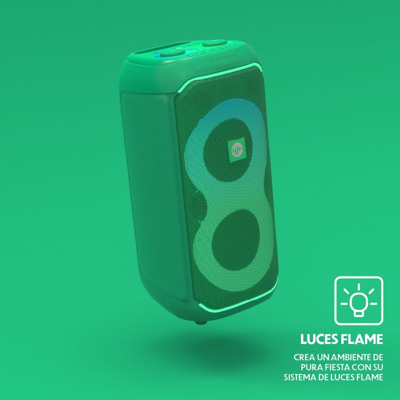 Disfruta de hasta 8 horas de reproducción continua gracias a su batería de larga duración. Conéctate fácilmente a tu celular o dispositivo vía Bluetooth y anima cualquier reunión con las vibrantes luces Flame que añaden un toque festivo.