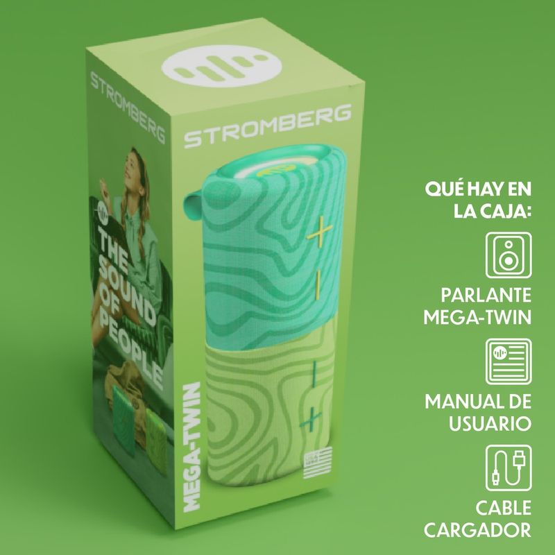 Experimenta un audio envolvente con el Stromberg MEGA-TWIN. Sus 20W de potencia real y dos subwoofers de 3" ofrecen bajos profundos y agudos nítidos, duplicando tu experiencia sonora al poder usarlo como un solo parlante o separarlo en dos para un verdadero sonido estéreo.
