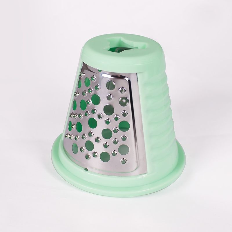 Este rallador eléctrico multipropósito viene con tres accesorios de acero inoxidable intercambiables: uno para rallado fino, otro para rallado grueso y uno específico para rallar queso. Cubre todas tus necesidades culinarias, desde preparar ensaladas hasta gratinar tus platillos favoritos.