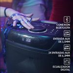 Lleva la diversión al siguiente nivel con la función de karaoke, que incluye efectos de voz para que tus actuaciones suenen profesionales. Conéctate de forma inalámbrica, a través de la entrada auxiliar o de micrófono, y disfruta de la opción de emparejar dos unidades para un sonido estéreo inmersivo.