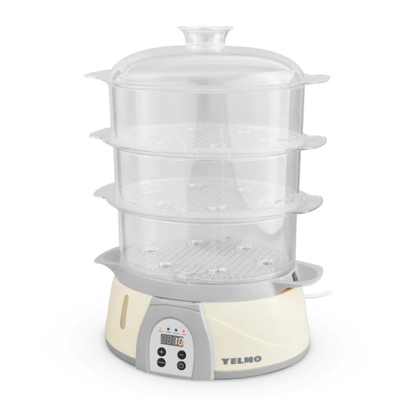 Disfruta de comidas saludables y deliciosas en cuestión de minutos con nuestra vaporera de 850W. El sistema de vapor instantáneo cocina tus alimentos rápidamente, conservando sus nutrientes y sabor. Con tres recipientes apilables de 8.5 litros de capacidad total, puedes preparar varios platos simultáneamente, optimizando tu tiempo en la cocina.