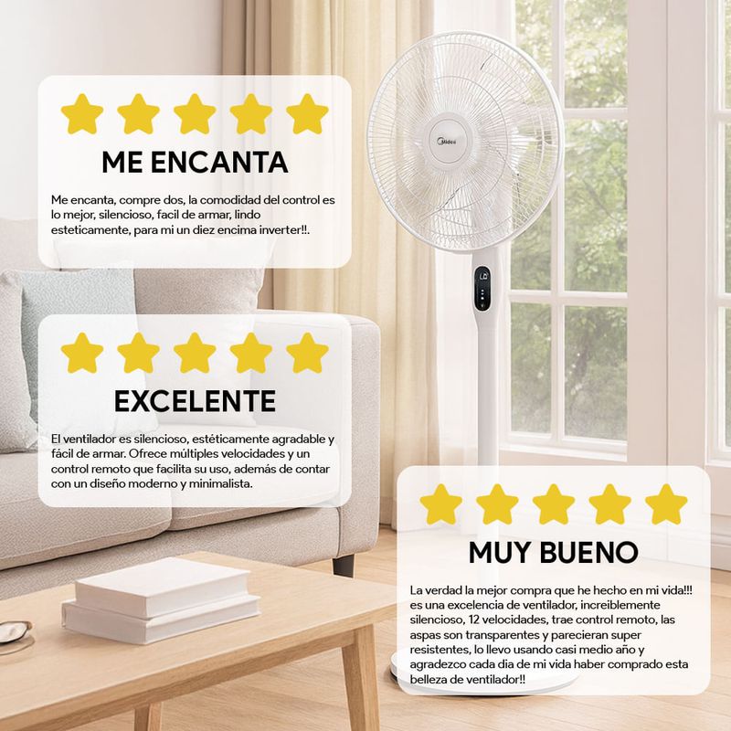 Experimenta un ambiente fresco y agradable en tu hogar u oficina con nuestro ventilador de alta tecnología. Disfruta de un rendimiento potente y funciones inteligentes como control remoto, temporizador y modo sleep para tu máxima comodidad.